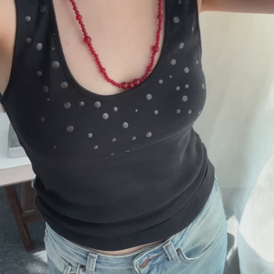 Natural red agate, 93 cm of effortless elegance—wear it long or double it up.