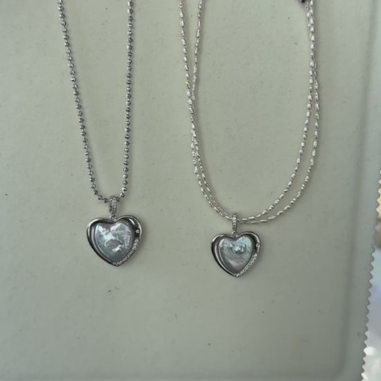 A rare heart-shaped treasure, handcrafted in 925 sterling silver, embracing a natural baroque freshwater pearl with a soft blue lustre.